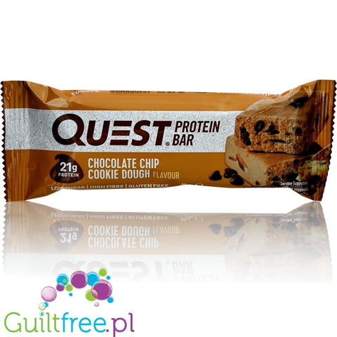 Additional information: Quest Bar Protein Bar Chocolate Chip Cookie Dough Flavor - High-protein bar with chocolate and a natural shortbread cookie flavor, contains a sweetener Best before: EXP date on the packaging in the US format, i.e. MM/DD/YY - the first number refers to the month, the second to the day, the third to the year