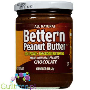Better 'n Peanut Butter Chocolate is a natural skimmed peanut butter for those who love their health and silhouette as hard as the taste of peanut butter! Healthy peanut butter with intense flavors of roasted peanuts and chocolate has a silky creamy texture and contains only 100kcal and only 2g of fat - 85% less fat and 40% less calories than regular peanut butter!