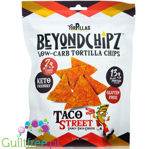 Additional information: BeyondChipz Torpillas High Protein Tortilla Chips, Tangy Taco Cheese - low-carb protein tortilla chips with a cheesy lime taco flavor BeyondChipz Torpillas High Protein Tortilla Chips, Tangy Taco Cheese