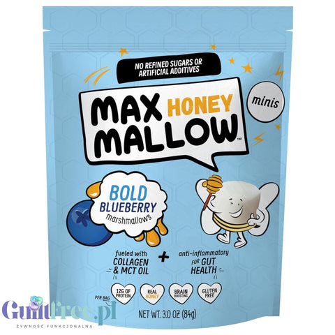 Additional information: Know Brainer Max Honey Mallow Bold Blueberry Mini Marshmallows - blueberry-flavored marshmallows, with honey, no added sugar, with added MCT oil and collagen peptides