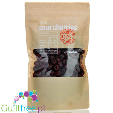 Additional information: GymBeam Lyophilized Sour Cherries - freeze-dried* cherries with no added sugar, 100% fruit *Freeze-drying is a drying method that preserves products without affecting their properties. It is characterized by a high degree of preservation of flavor, aroma, and nutritional value—higher than traditional drying.