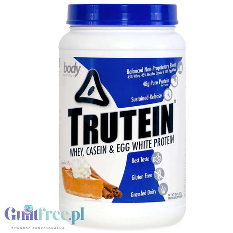Additional information: Body Nutrition Trutein Pumpkin Pie Whey, Casein & Egg White protein powder - protein supplement based on whey protein isolate, whey protein concentrate and egg white albumin, pumpkin pie flavor, dietary supplement, contains sugar and sweetener.