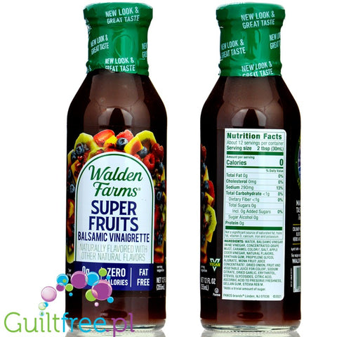 Additional information: Walden Farms Super Fruits Balsamic Vinaigrette Dressing – Energy-free balsamic-flavored salad dressing with fruit and sweeteners;