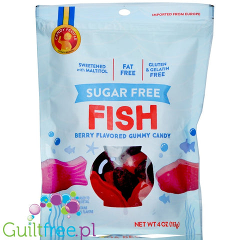 Informacje dodatkowe: Candy People sugar free fish, berry flavored gummy candy - żelki bez cukru o smaku owoców leśnych, zawierają substancje słodzące