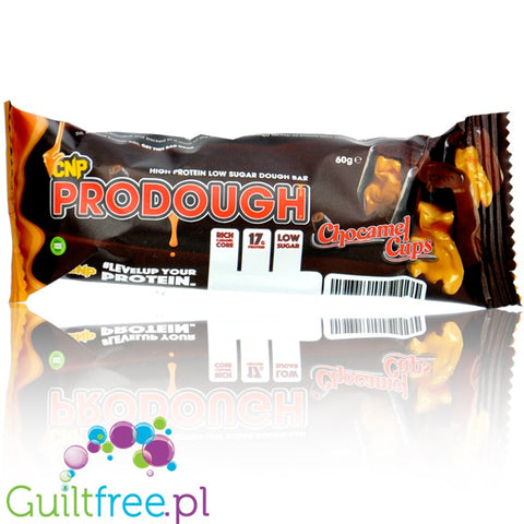 Informacje dodatkowe: CNP ProDough Chocamel Cup - baton proteinowy o smaku czekoladek z nadzieniem karmelowym, zawiera cukier i substancje słodzące