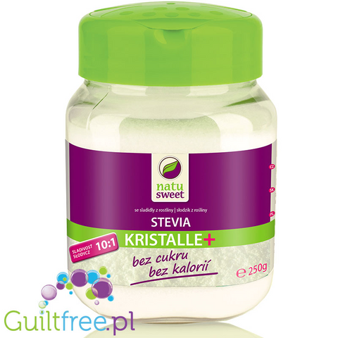 Stewia w kryształkach NatuSweet jest 10 razy słodszy od cukru stołowego - jedno opakowanie odpowiada słodyczą 2,5kg cukru.